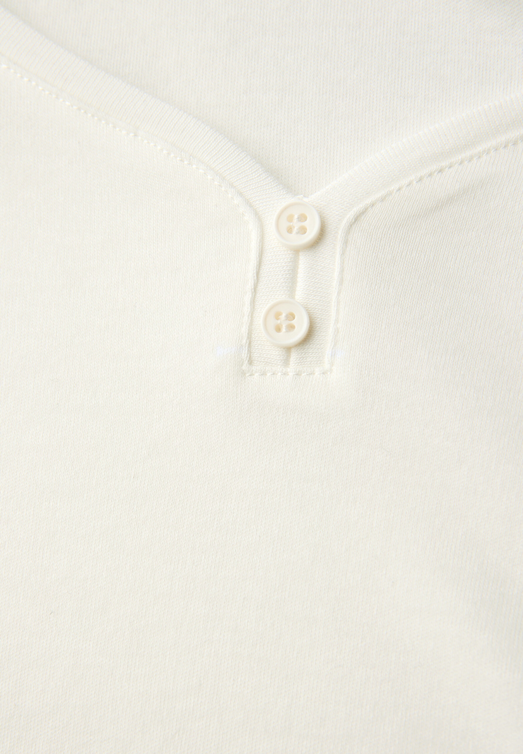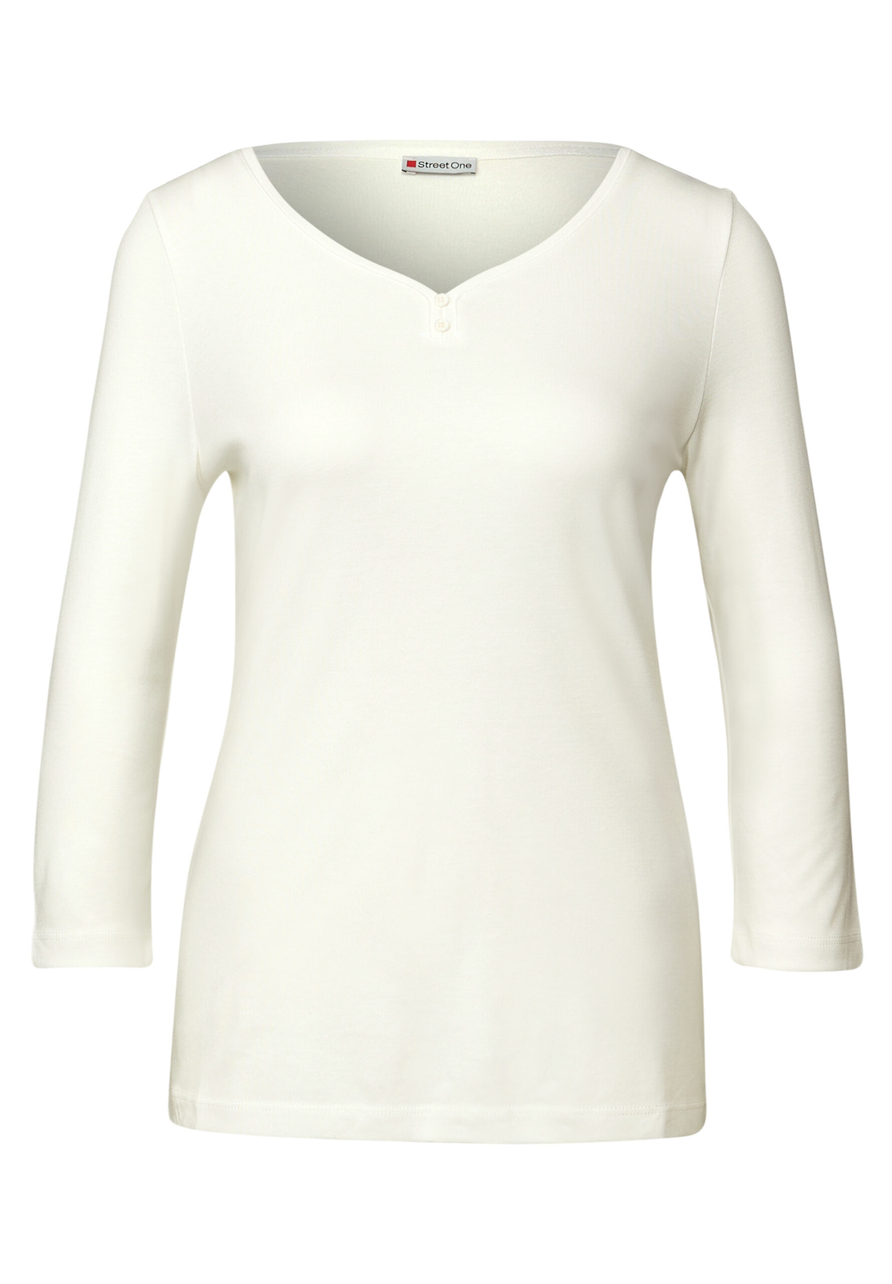 Das unifarbene Basic Shirt von Street One für Damen überzeugt durch seinen gerundeten V-Ausschnitt mit dekorativem Knopfdetail. Der softe Baumwoll-Modalmix liegt angenehm auf der Haut und macht das Shirt zum idealen Begleiter für Alltag und Büro. Die 3/4-Ärmel ergänzen den femininen Look perfekt. Damenshirt Gerundeter V-Ausschnitt mit Knopfdetail 3/4-Arm Unifarbe Softer Baumwoll-Modalmix Material: 50% Baumwolle, 50% Modal