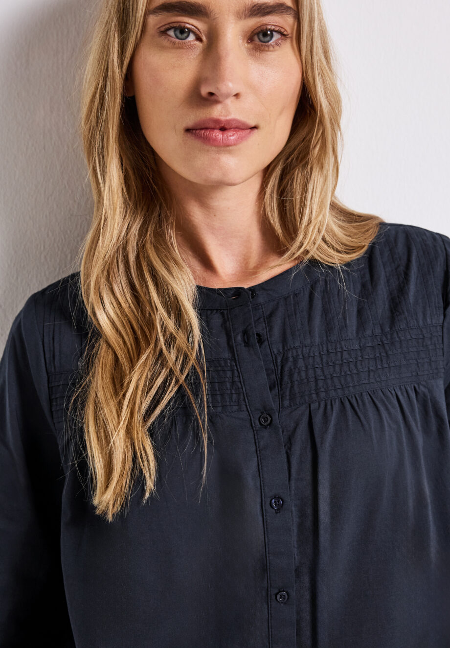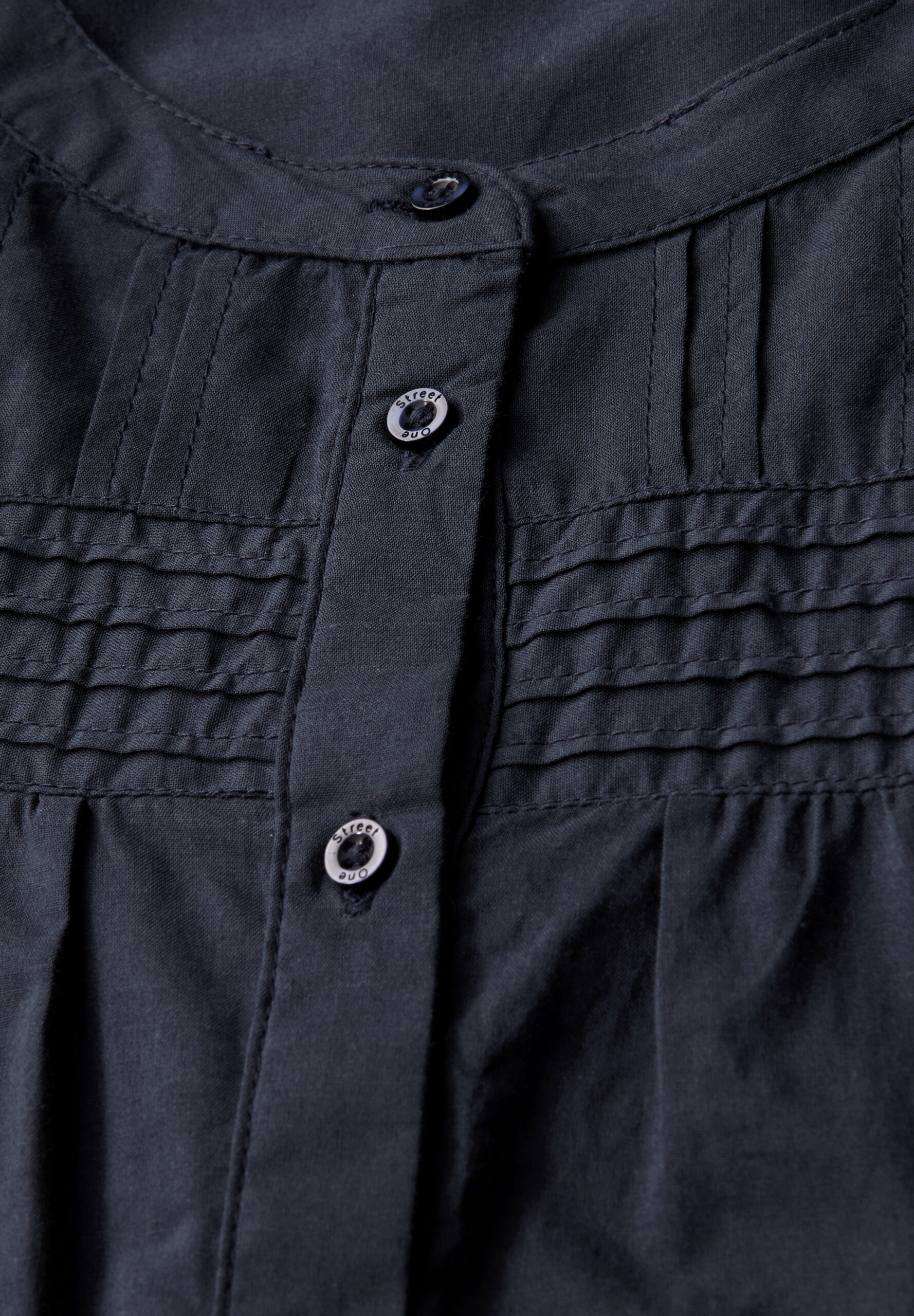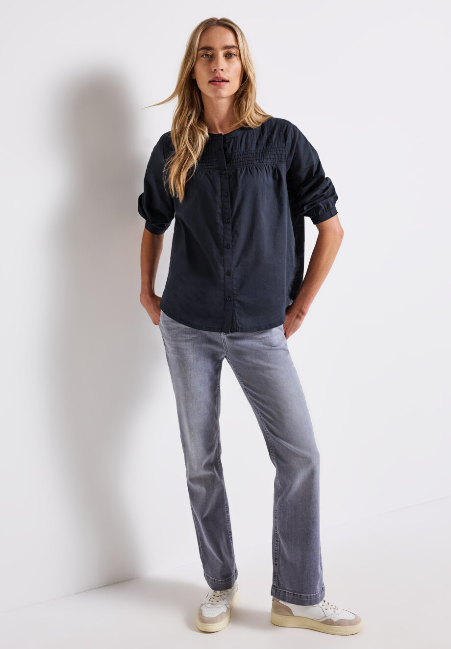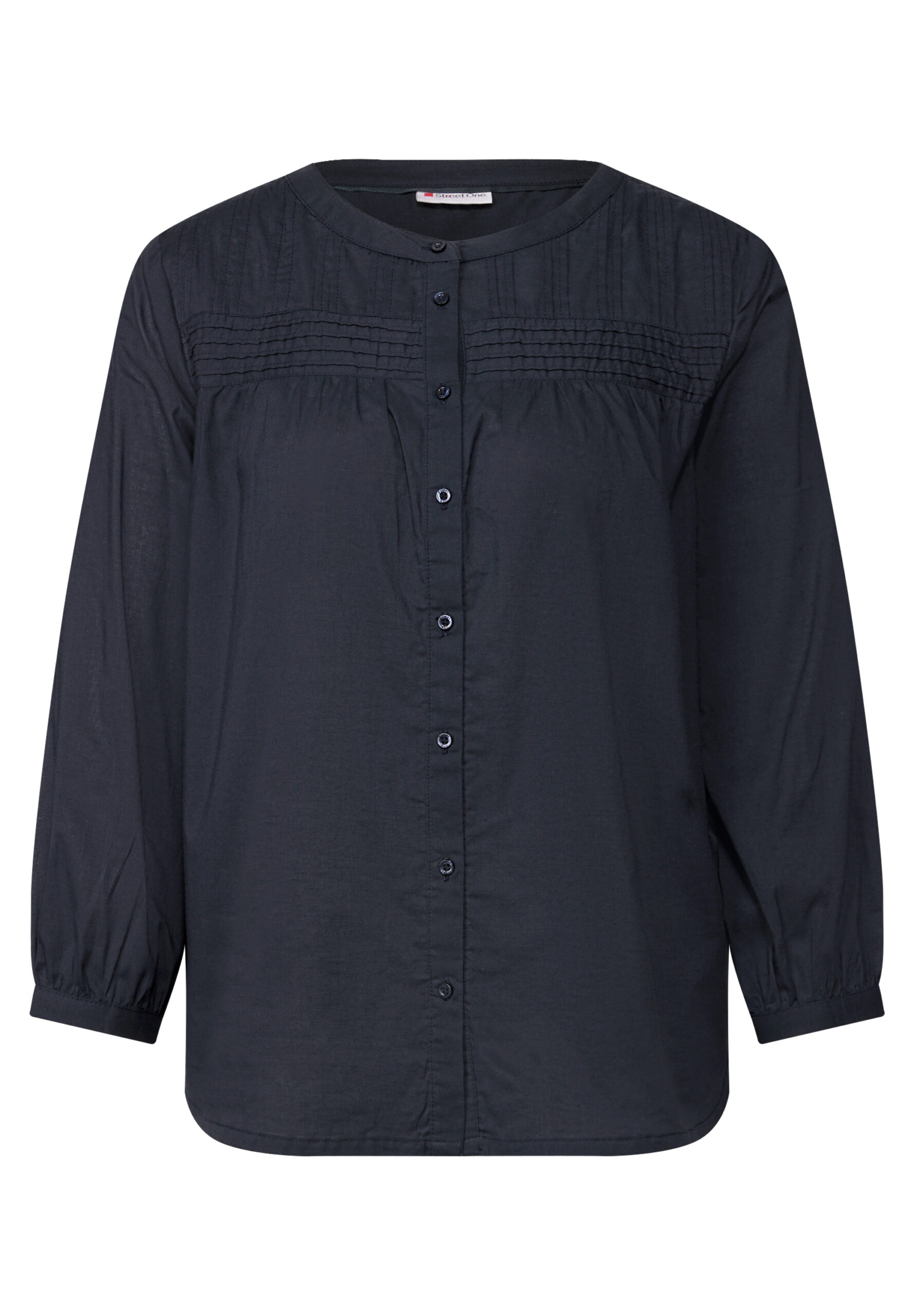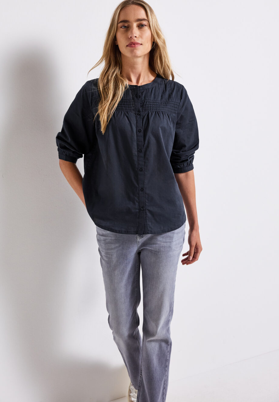 Diese Rundhalsbluse von Street One für Damen punktet mit Zierdetails, einer Knopfleiste und langen Ärmeln mit Bündchen und Knopf. Die reine Baumwolle sorgt für ein natürliches, angenehmes Tragegefühl. Ein femininer Klassiker mit verspielten Elementen – perfekt für Alltag und Büro. Rundhalsbluse Langarm mit Bündchen und Knopf Knopfleiste Zierdetails Reine Baumwolle Material: 100% Baumwolle