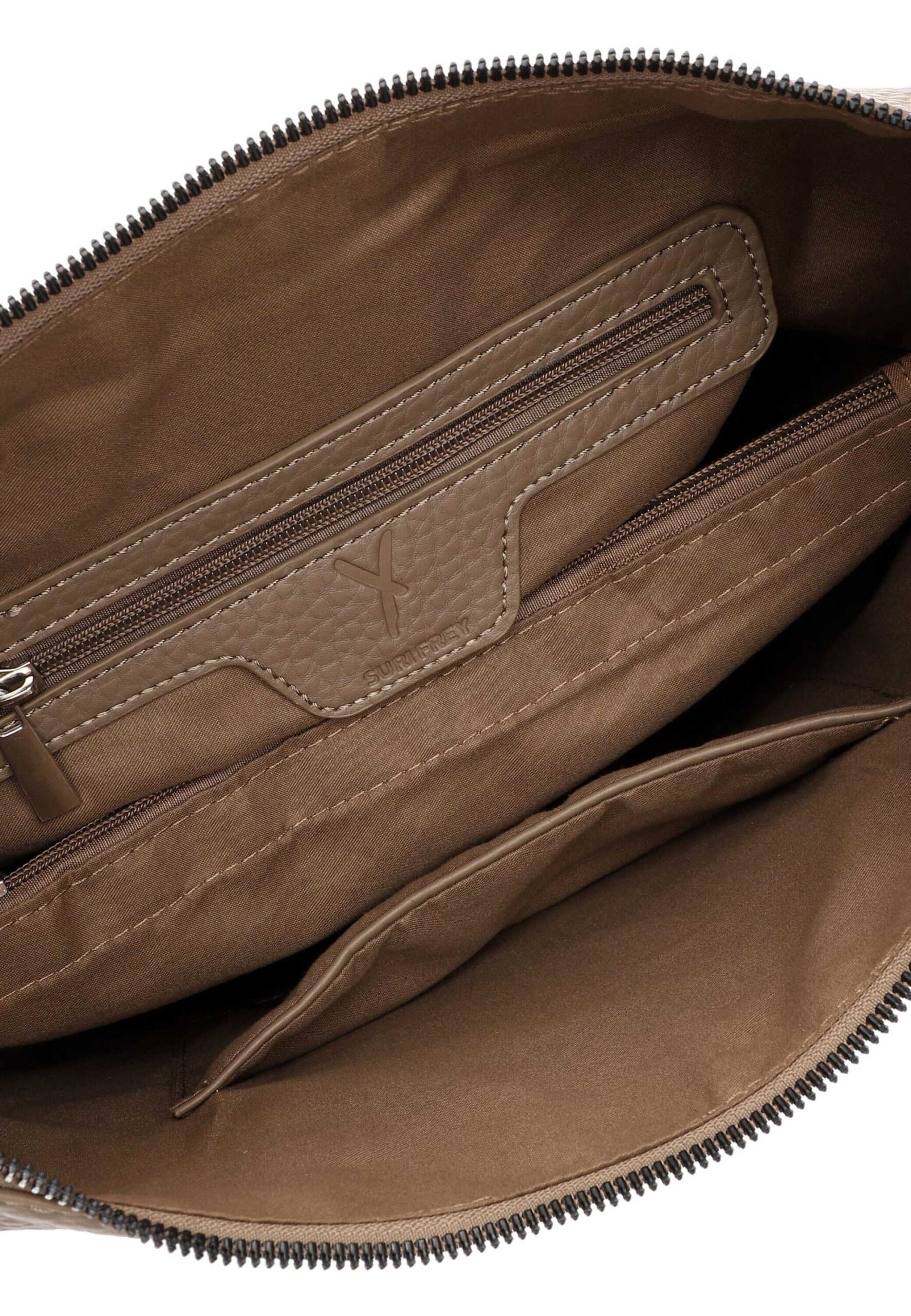 SURI FREY – die Marke für “Freygeister” Eine Handtasche ist der Spiegel der Persönlichkeit einer Frau. Ob aufgeräumt oder etwas chaotisch – man muss sie einfach lieben! SFY Buffey ist der wunderschöne Beutel in Uni-Design mit Reißverschluss, der echte Persönlichkeit ausstrahlt. Ob für Office, Uni oder in der freien Zeit – mit ihm lässt sich einfach jedes Abenteuer bestreiten. Gefertigt ist das Modell, das sich mit einem Reißverschluss verschließen lässt, aus Feinsynthetik. Durch das Material ist es angenehm im Griff. Die Echtleder-Optik und das Uni-Design sind fein gearbeitet und verleihen dem Beutel einen edlen Look. SURI FREY kennt die Wünsche ihrer Bewunderer genau und sie weiß, was sie verbindet – Offenheit, Lebensfreude und Freundschaften. Und genau das spiegeln die Produkte des angesagten Modelabels wider. Ordnung ist das halbe Leben. Ein übersichtliches Hauptfach und eine Reißverschluss-Mittelwand sind in der Tasche integriert. Ein Reißverschlussfach sichert Portemonnaie, Handy und andere wichtige Dinge vor Langfingern z. B. in der vollen Straßenbahn oder beim Shoppingtrip in der Fußgängerzone. Das Rückfach mit Reißverschluss ist optimal, um zusätzlichen Stauraum zu schaffen und Dinge schnell griffbereit zu haben. Für alle, die eine weiche Haptik lieben – SFY Buffey ist angenehm anschmiegsam. Eine Logo-Prägung schmückt optisch und hebt das besondere Design dieses neuen Favoriten hervor. Dieses neue Lieblingsstück wird Tragegriff einfach über der Schulter getragen. Im hübschen Beutel ist einfach Platz für alles – sogar für ein kleines Geschenk für die Gastgeber der aufregenden Party oder ein paar Pralinen für die Schwiegermutter.