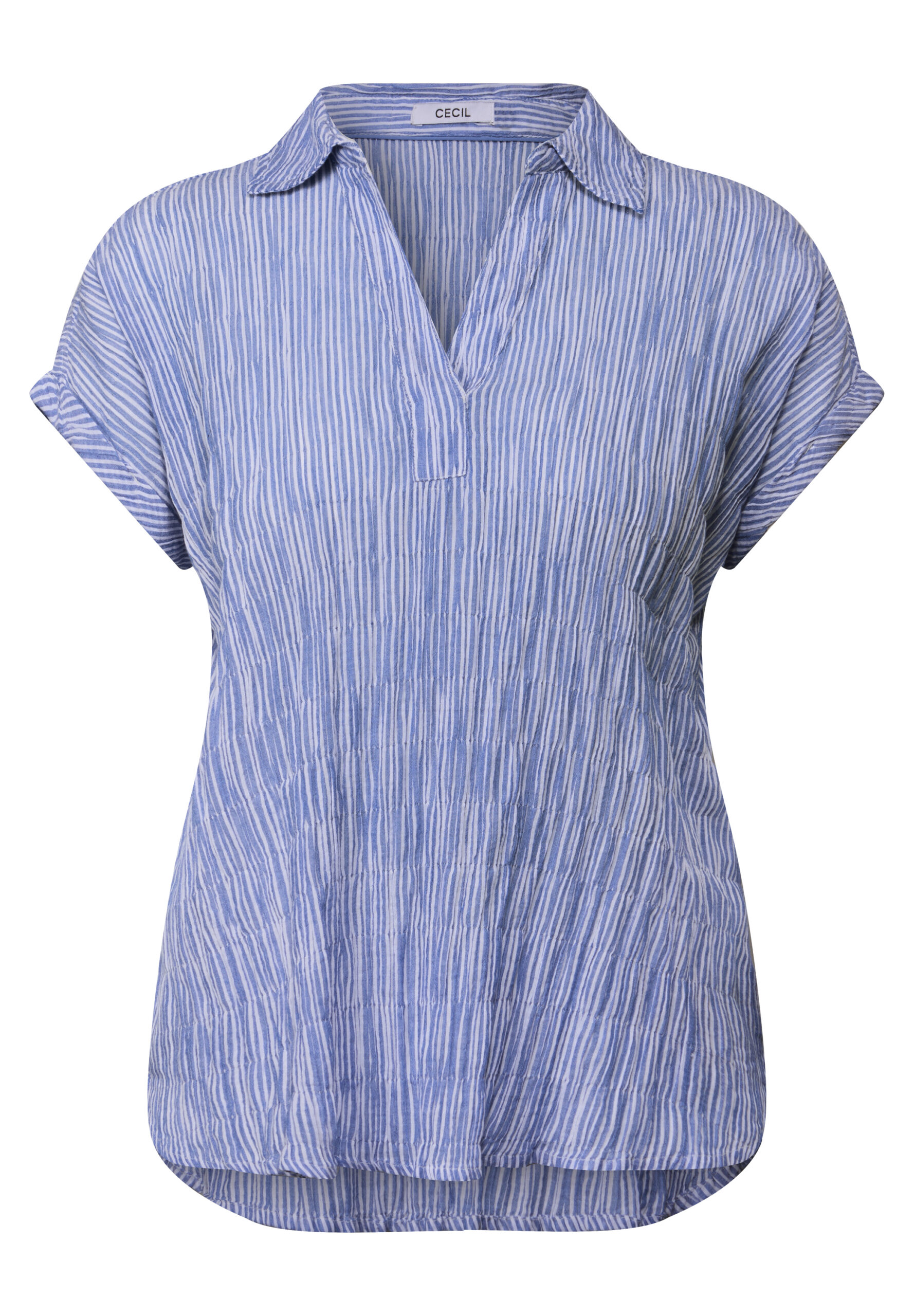 Diese Strukturbluse von CECIL für Damen kombiniert Hemdkragen, dropped shoulders und dezente Streifen. Der Baumwollmix mit Stretchanteil sorgt für hohen Tragekomfort. Ein sportiv-lässiger Look für jeden Tag. Blusenshirt mit gerundetem Saum Hemdkragen Dropped Shoulders Streifenstruktur Baumwollmix mit Stretchanteil Material: 95% Baumwolle, 5% Elasthan