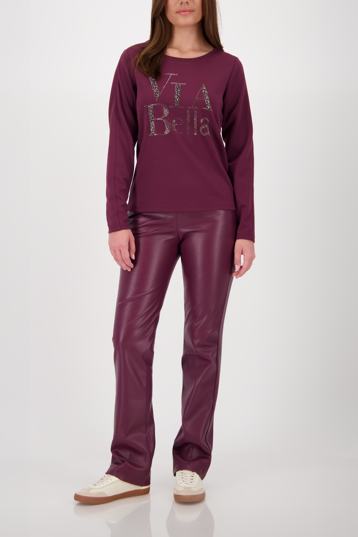 Stylische Hose in Lederoptik mit Straight-Leg-Schnitt und elastischem Bund – bequem, modern und vielseitig kombinierbar für trendige Alltags- oder Abendlooks.