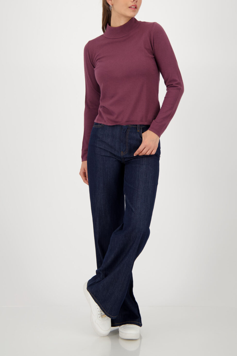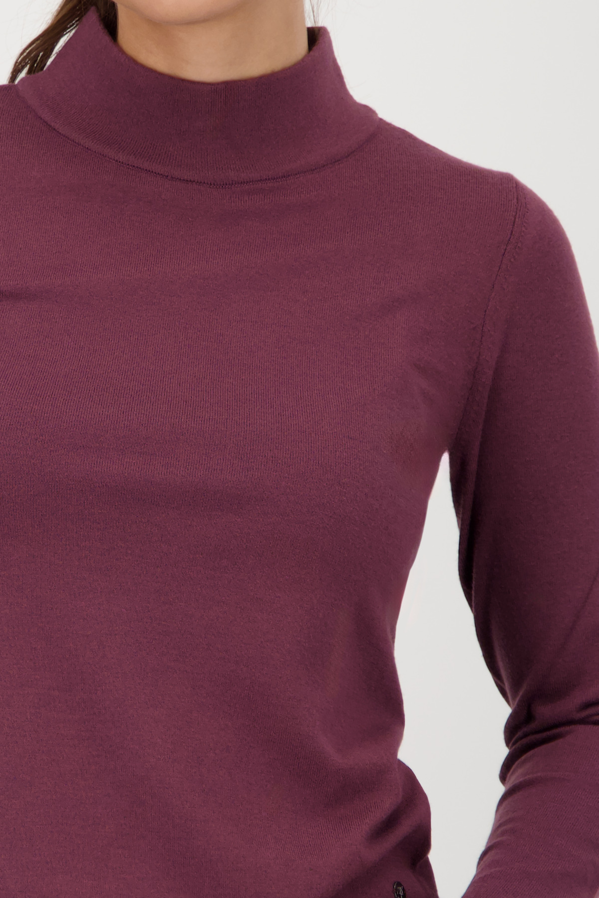 Genießen Sie den stilvollen, leicht taillierten Basic-Pullover aus fließender Viskose mit weicher Haptik und elegantem Stehkragen.
