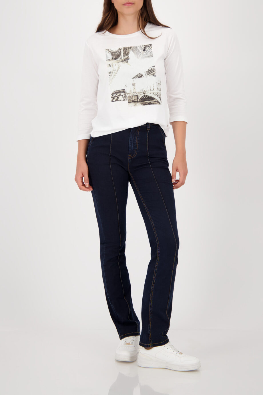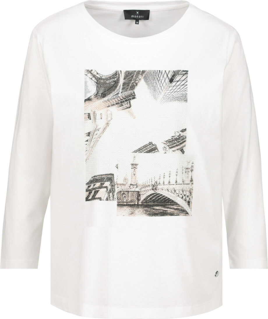 Elegantes Shirt aus feiner Baumwolle mit Modal, mit bezauberndem Paris-Druck und glitzernden Strasssteinen. Idealer Regular Fit mit abgerundeten Säumen.