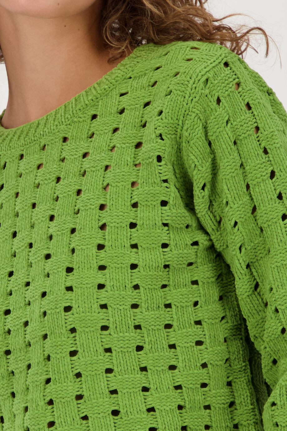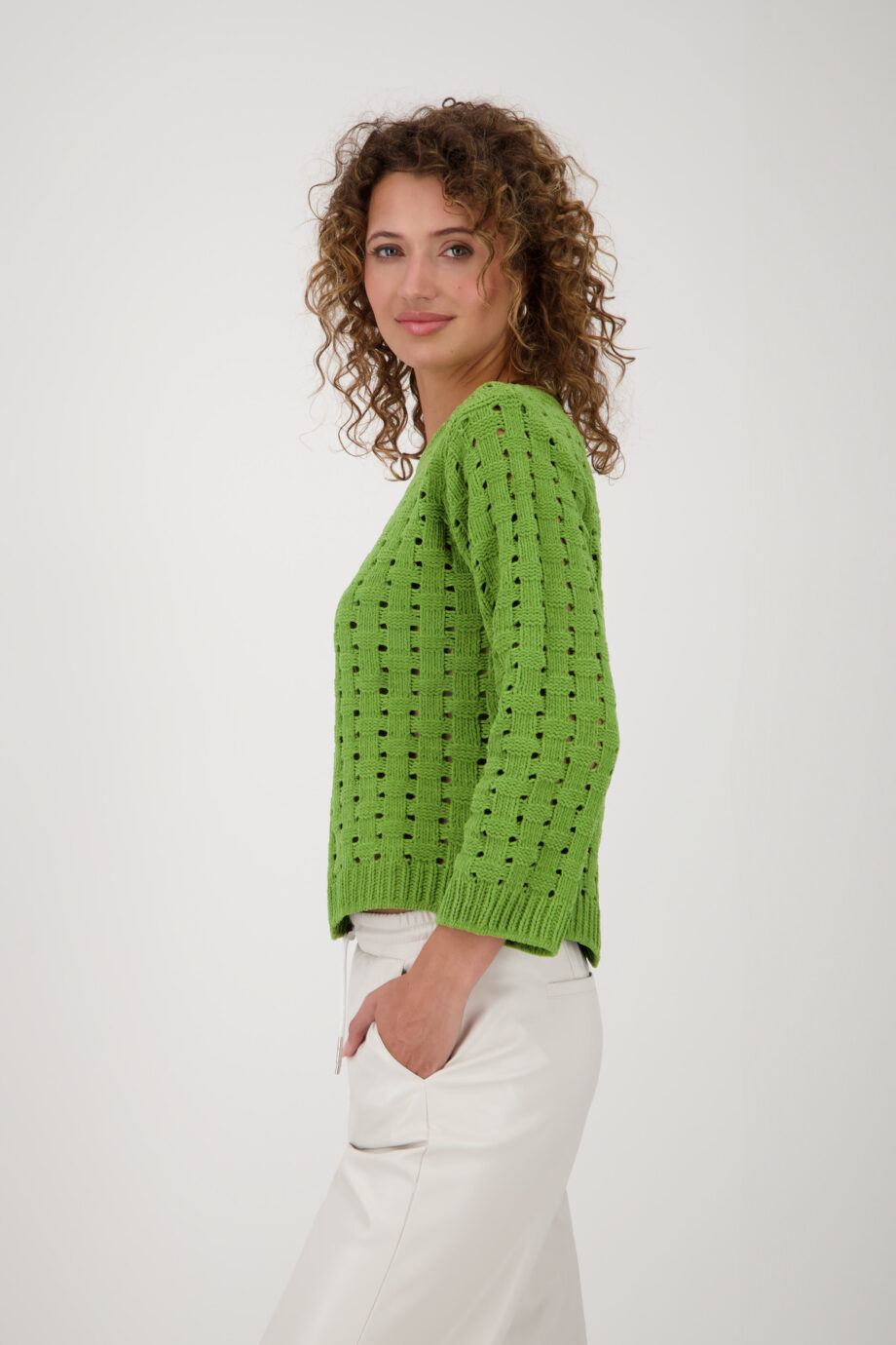 Pullover aus weichem Chenillegarn mit sanfter Haptik, einem Würfelstrickmuster und leicht überschnittenen Schultern. Gemütlich, stylish und vielseitig kombinierbar.