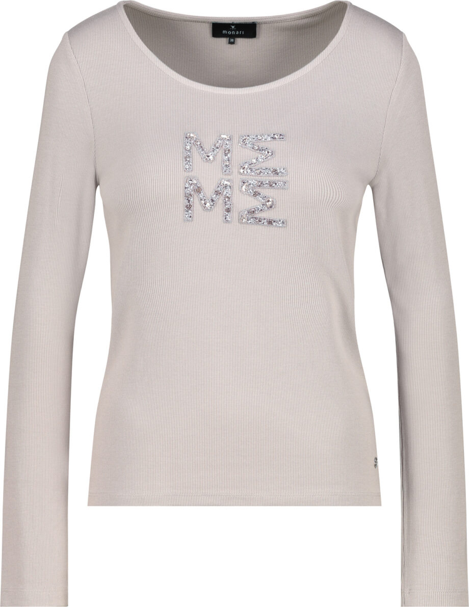 Langarmshirt aus fließender Viskose mit elastischem Material, feiner Rippen-Struktur, dezenten Schmuckdetails und leicht taillierter Passform – elegant und bequem zugleich.