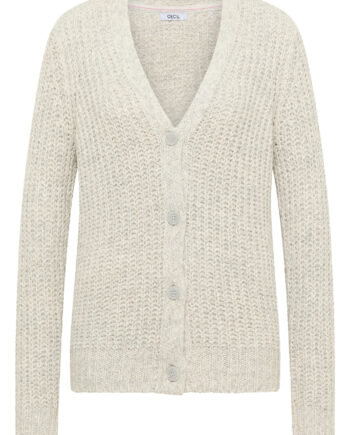 Elegante Strickjacke aus einer hochwertigen Wollmischung verziert mit Strasssteinen und einem Schriftmuster.